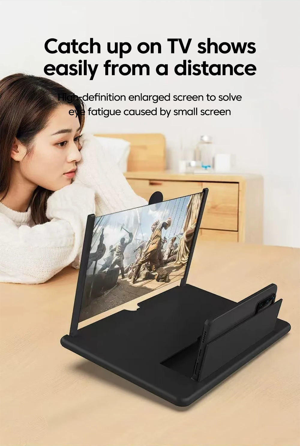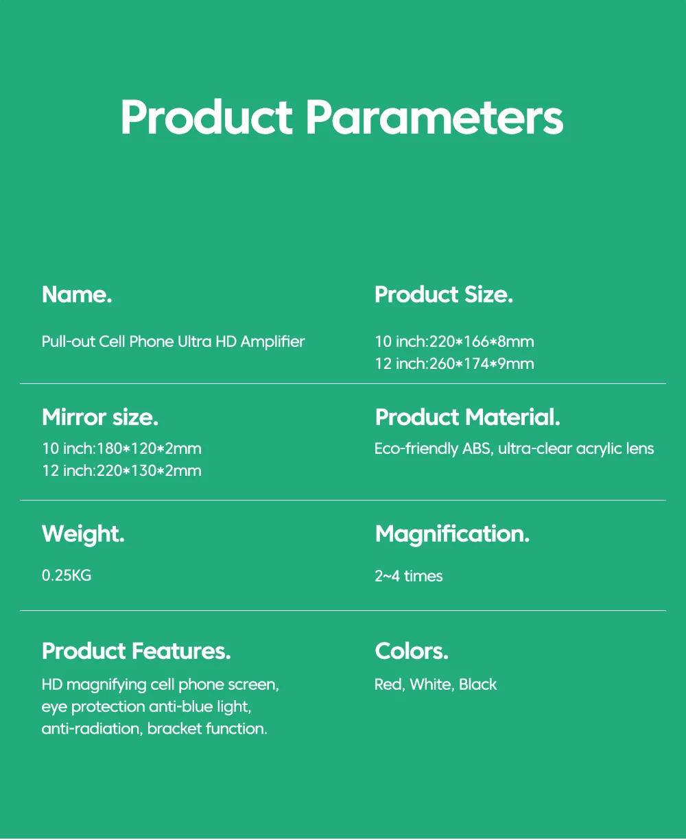 HD Portable Phone Screen Amplifier - 6.5" Pull-Out Fresnel Lens Anti-Blue Light Foldable Stand for Eye Protection