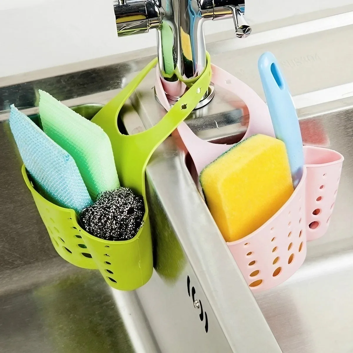 1. Snap-on design: can be hung on the faucet of the kitchen, put on the dish cloth, sponge, etc.